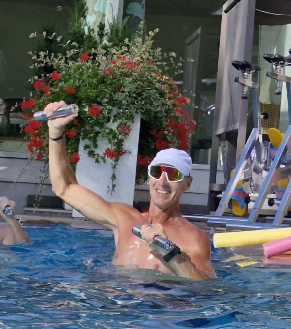 Hanteltraining, ein neues Konzept von Michael Epp, das an Land und auch im Wasser Anwendung findet.