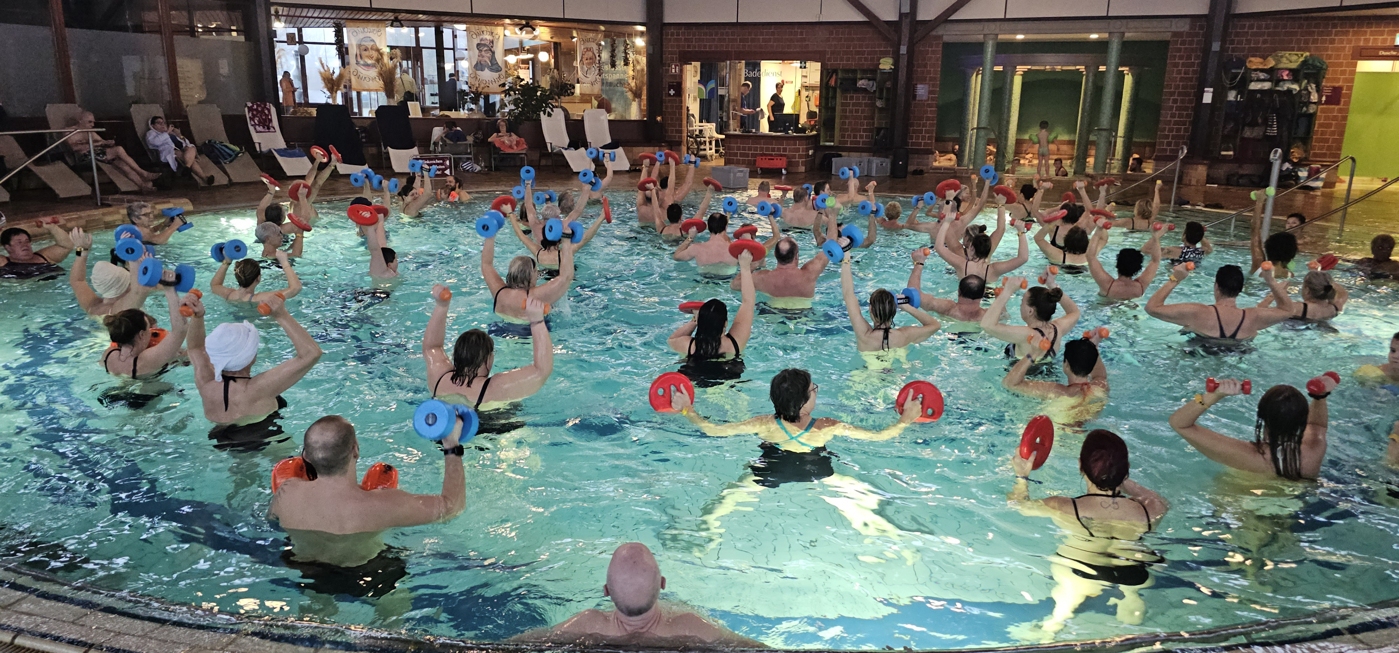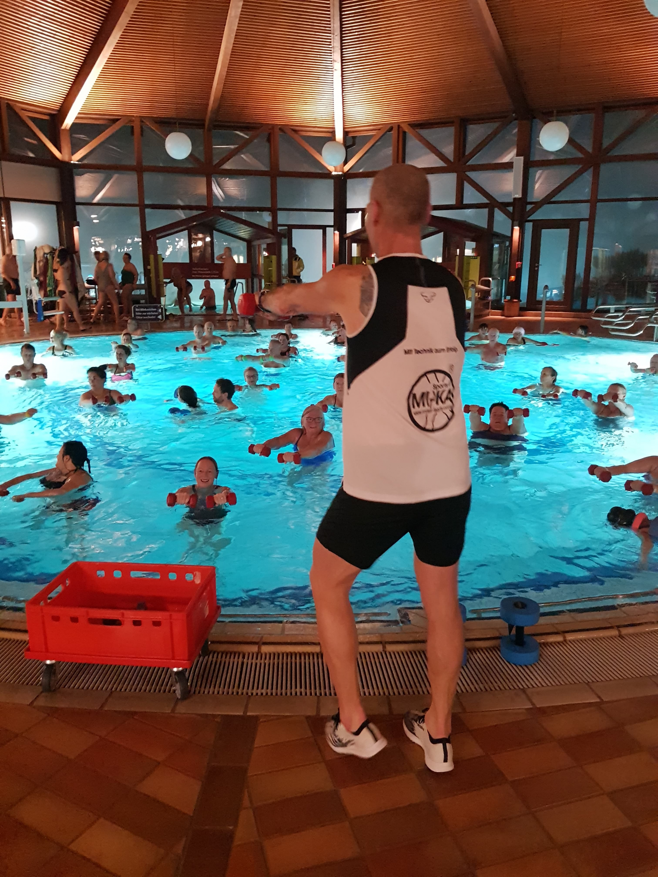 Wow - was für ein Event in der Sonnenhof Therme Bad Saulgau - Aqua Power mit Michael Epp. Ohne Anmeldung können die Badegäste 4 Stunden an meinen Kursen in der Therme teilnehmen. Aqua Fitness, Aqua Power oder Aqua Trampolin - immer schön im Wechsel. 8 Einheiten Aqua Power und es war unglaublich - im 1. Kurs waren über 60 Teilnehmer im Becken und so zog es sich die 4 Stunden durch - ein genialer Abend.