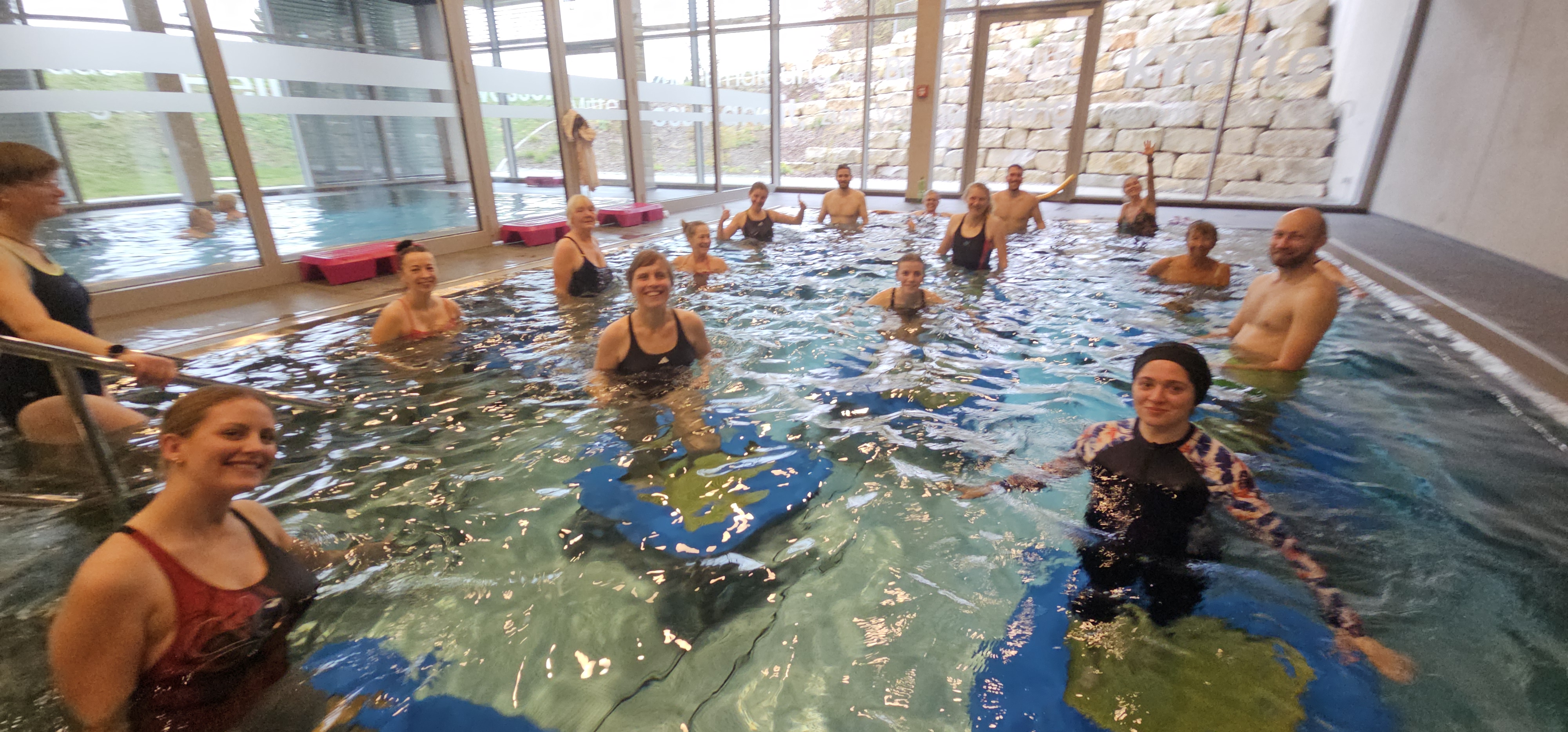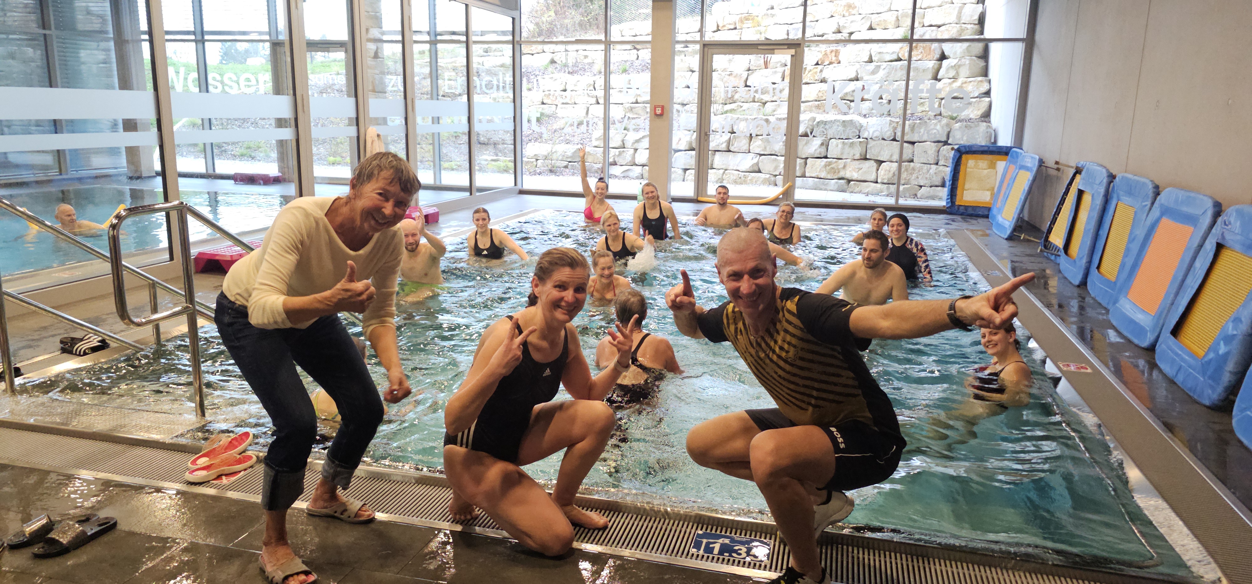 Rheumaliga Mössingen - den Trainerkollegen wurde bei dieser Fortbildung Aqua Nordic Walking, Aqua Trampolin und Aqua Bike vorgestellt - gerne war ich als Referent dabei und durfte die Teilnehmer motivieren und trainieren.