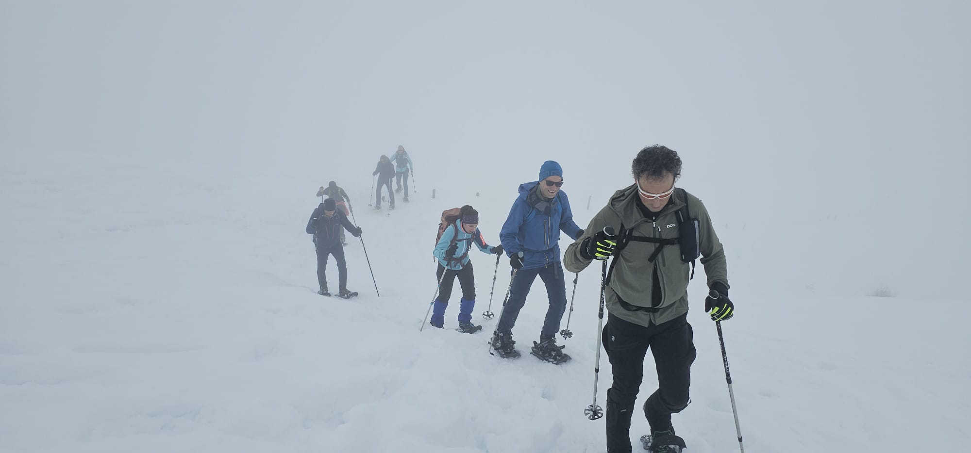 MI-KA Sports und der Schneelaufverein Ravensburg veranstaltet jedes Jahr Schneeschuhtouren mit kleineren Gruppen. Die Tour führte uns über den Bolgen zum Riedberger-Horn, eine schöne und relativ anspruchsvolle Tour. Leider hatten wir auch bei dieser Tour mit dem Nebel zu kämpfen, trotz Nebel hatten wir eine schöne Tour.