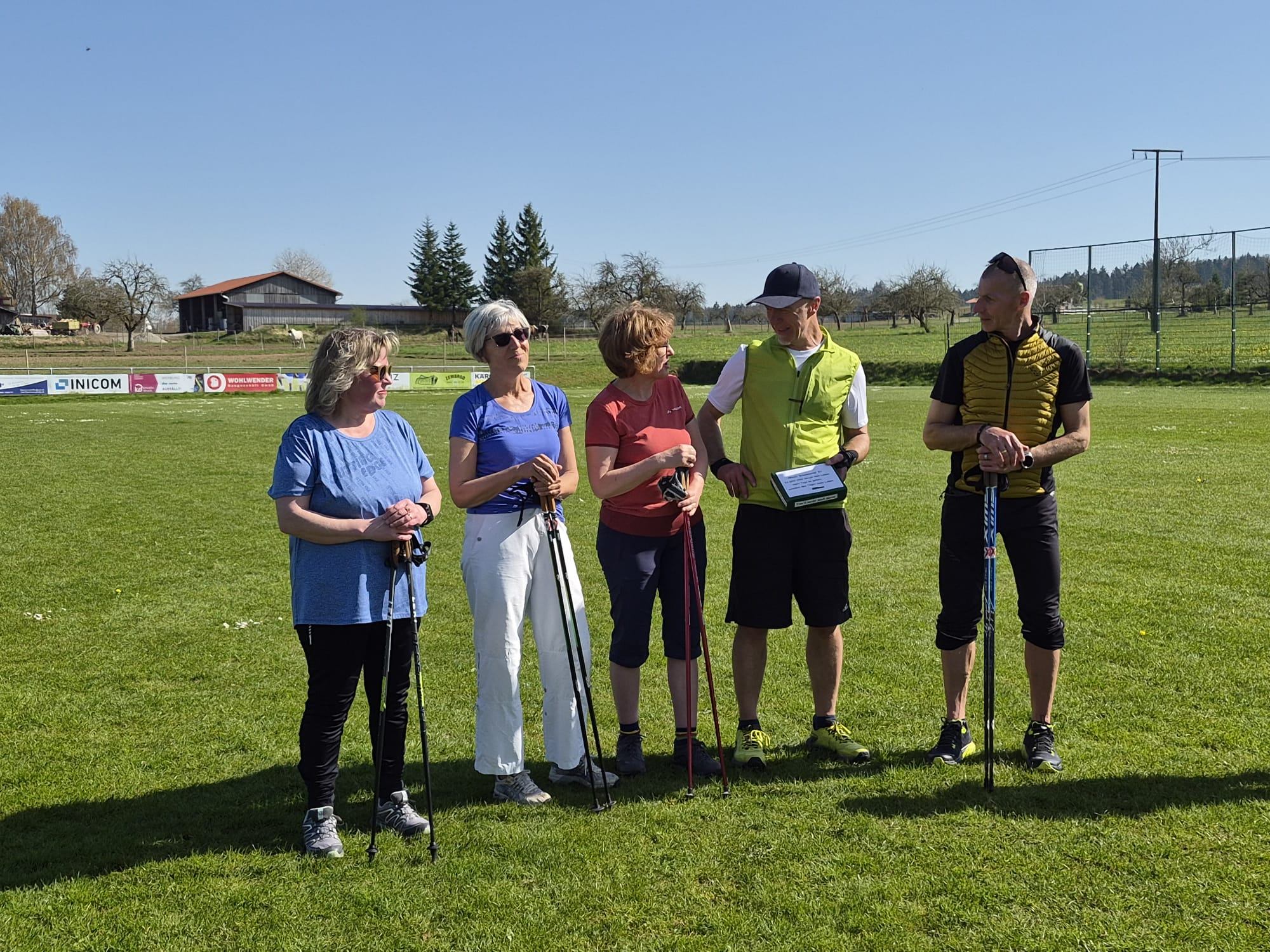 Nordic Walking Training für einen guten Zweck - die Teilnahmegebühr ging an das Hospiz Schussental. 30 Nordic Walker trafen sich zum Training mit mir auf dem Sportplatz in Fleischwangen. Zuerst gab es eine Technikeinheit, dann ginge es noch auf die Strecke. Mitarbeiter vom Hospiz nahmen dann die Spende von 440 Euro entgegen. Es macht immer Spaß mit meinem Sportskollegen "Hatte" ein kleines Event zu organisieren.